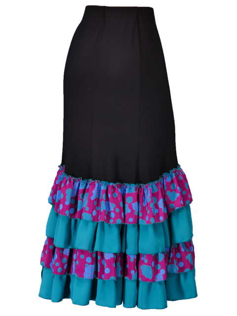 - Flamenco Semi Mermaid Cut Skirt / Roses & Dots / Model Tecla