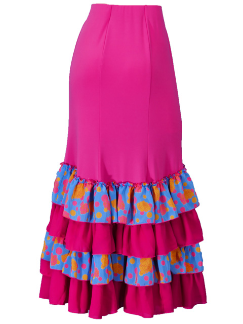 - Flamenco Semi Mermaid Cut Skirt / Roses & Dots / Model Tecla