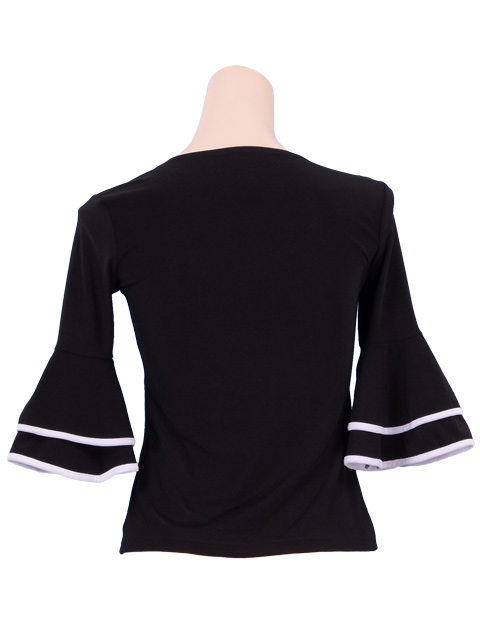 OVERVIEW: - Gentle V neckline - 2 elegant flounces with a piping - Color : White piping - Weight : 220g *The average weight of this product may vary in each size.