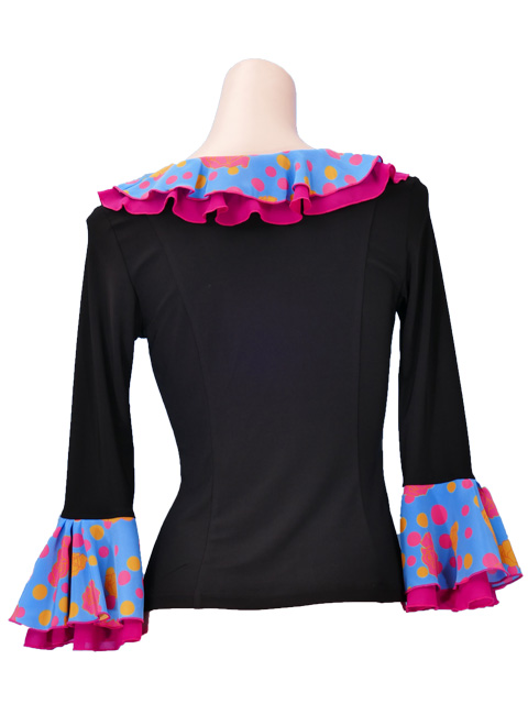 OVERVIEW: - Flamenco Ruffle Long Sleeves Borero / Dots & Roses frills - Color : Black & Blue - Actual product weight*: 0.2kg *The average weight of this product may vary in each size.