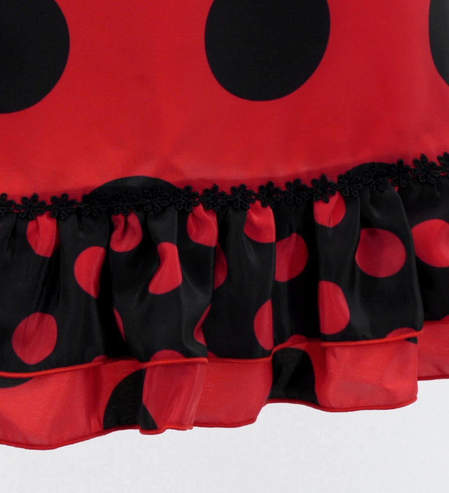 - Luxury Collection, red with black polka dots, red stitching, black flower trim.