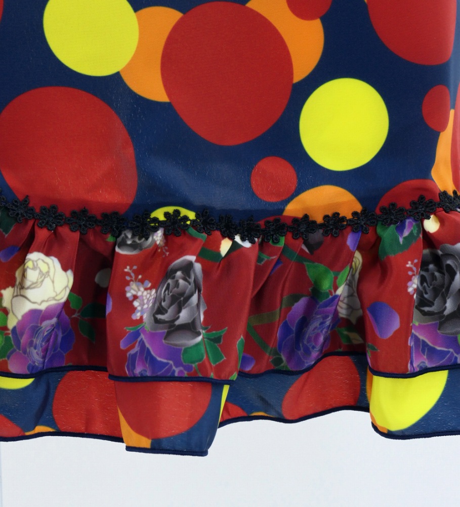 - Luxury Collection, Navy with yellow and red dots, navy stitching, black flower trim.