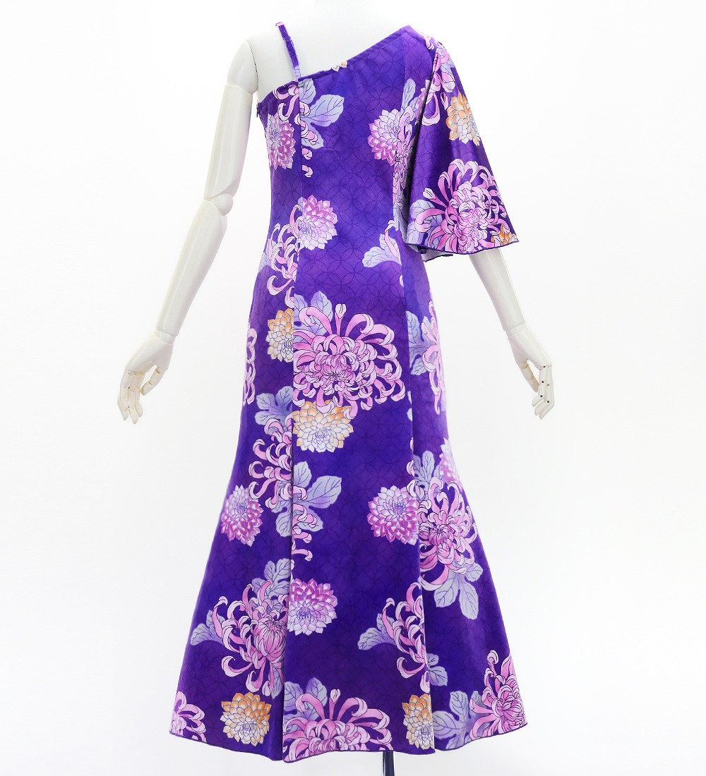 OVERVIEW: -One Shoulder Frill Sleeve Long Dress / Japan Fabric -Color:Purple