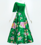 Japan Fabric One Shoulder Frill Sleeve Long Dress / Green / JW004gr