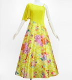 Japan Fabric Long Dress with Cherry Blossom Print / Shantung / Cream Yellow / JW001crye
