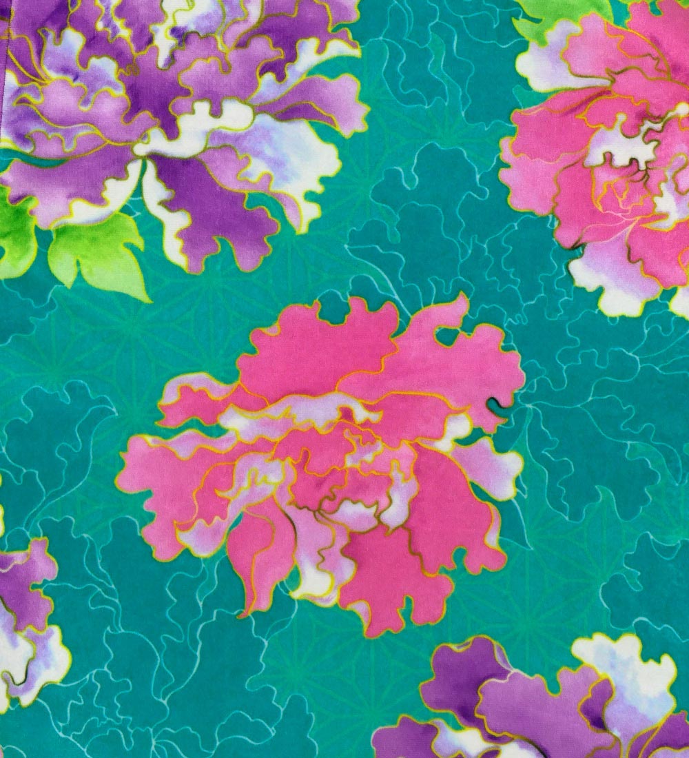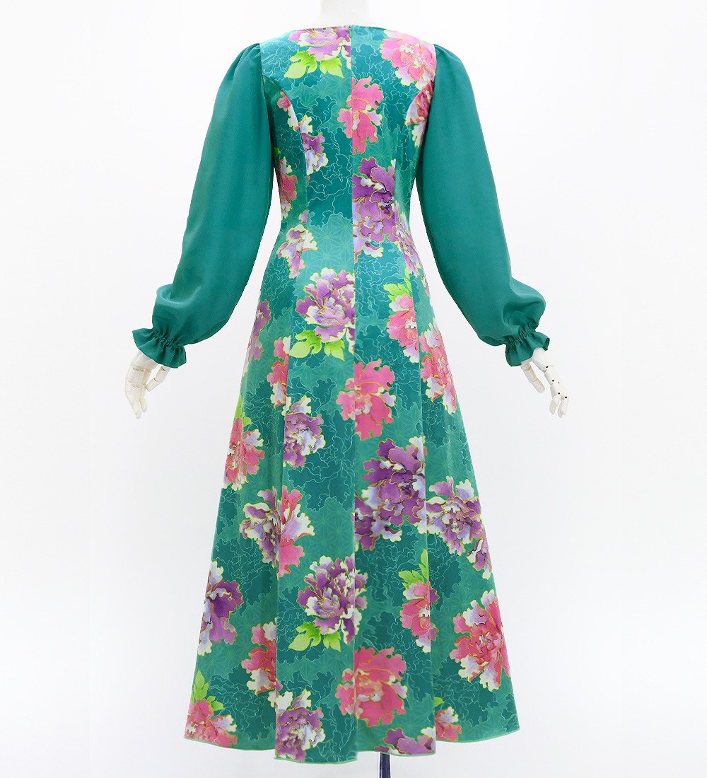 OVERVIEW: -Long Sleeve Dress / Japan Fabric -Print:Peony -color:Turquoise Blue