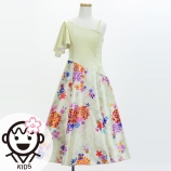 Kids Japan Fabric One Shoulder Frill Sleeve Long Dress / Light Green / JWp004lgr