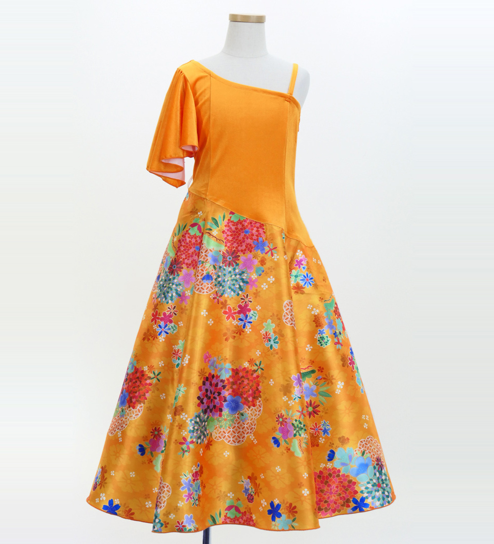 -Kids One Shoulder Frill Sleeve Long Dress / Japan Fabric
