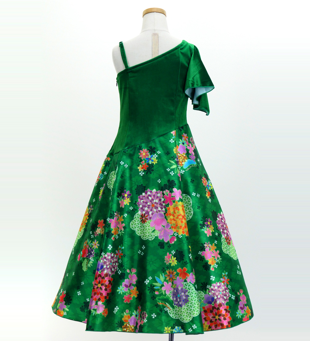 -Kids One Shoulder Frill Sleeve Long Dress / Japan Fabric