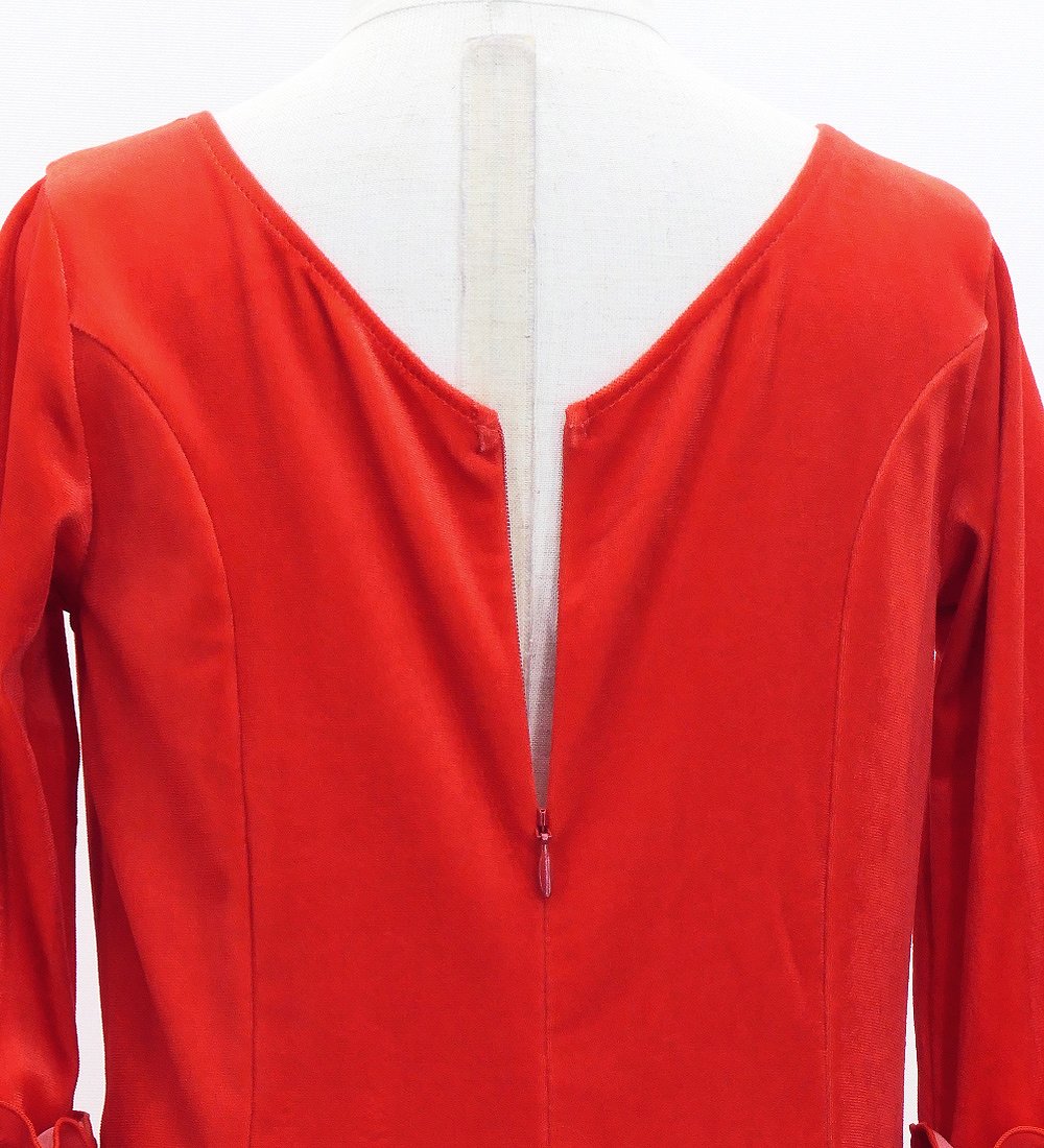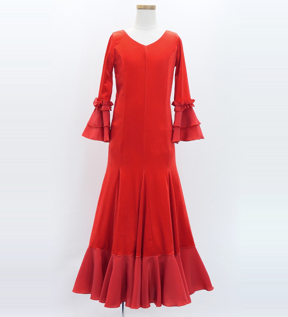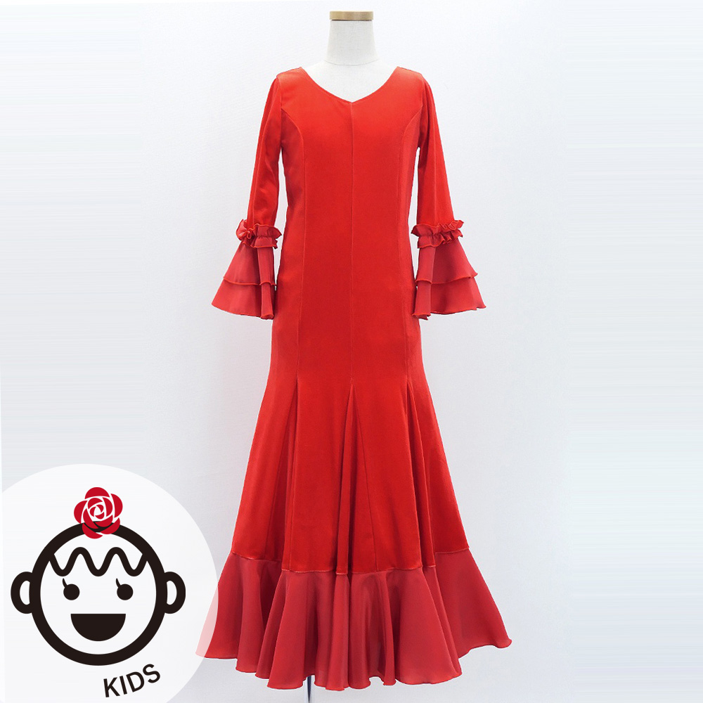 - Kids Flamenco Flare Velvet Dress with Frills / Dark Red2