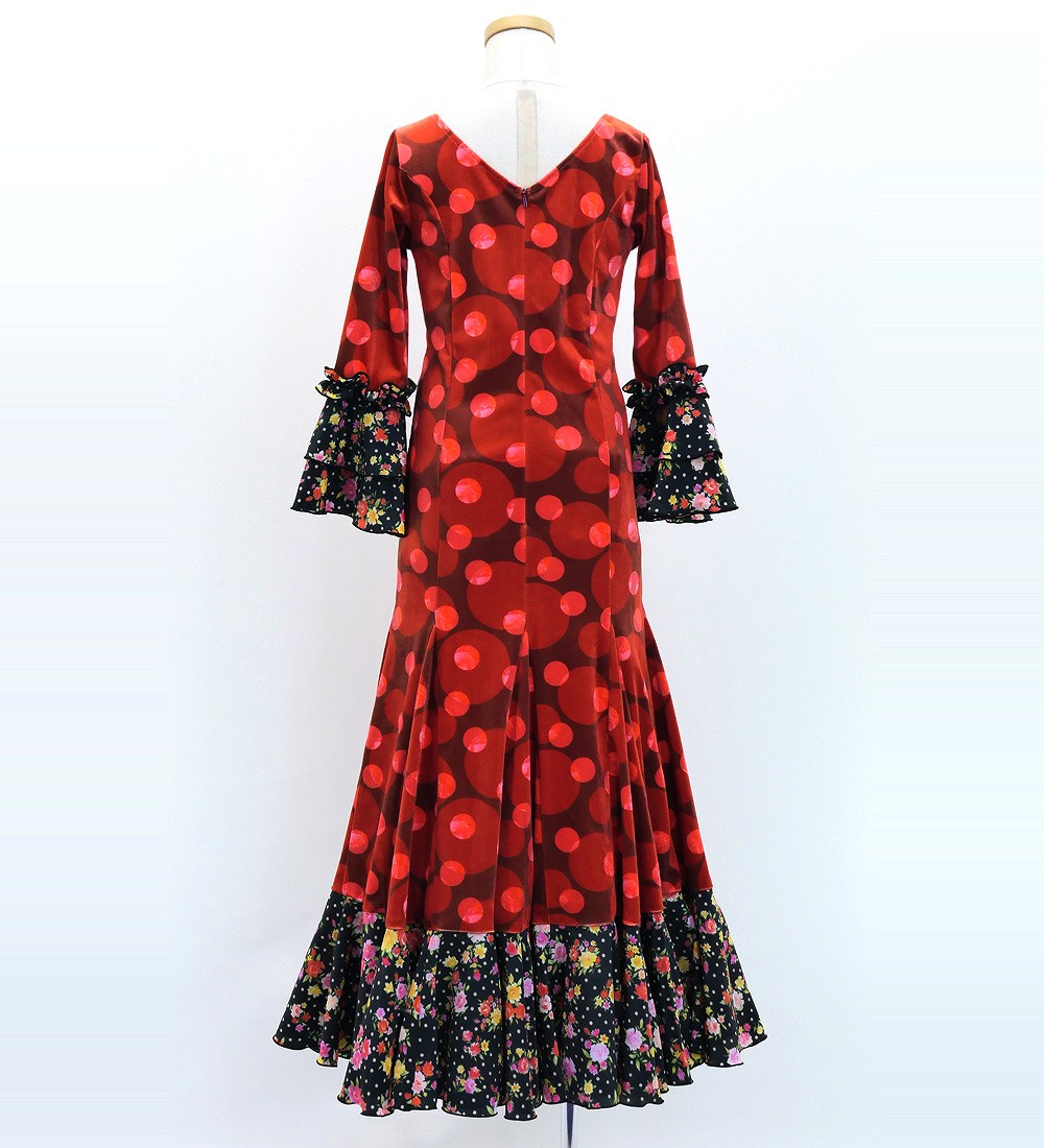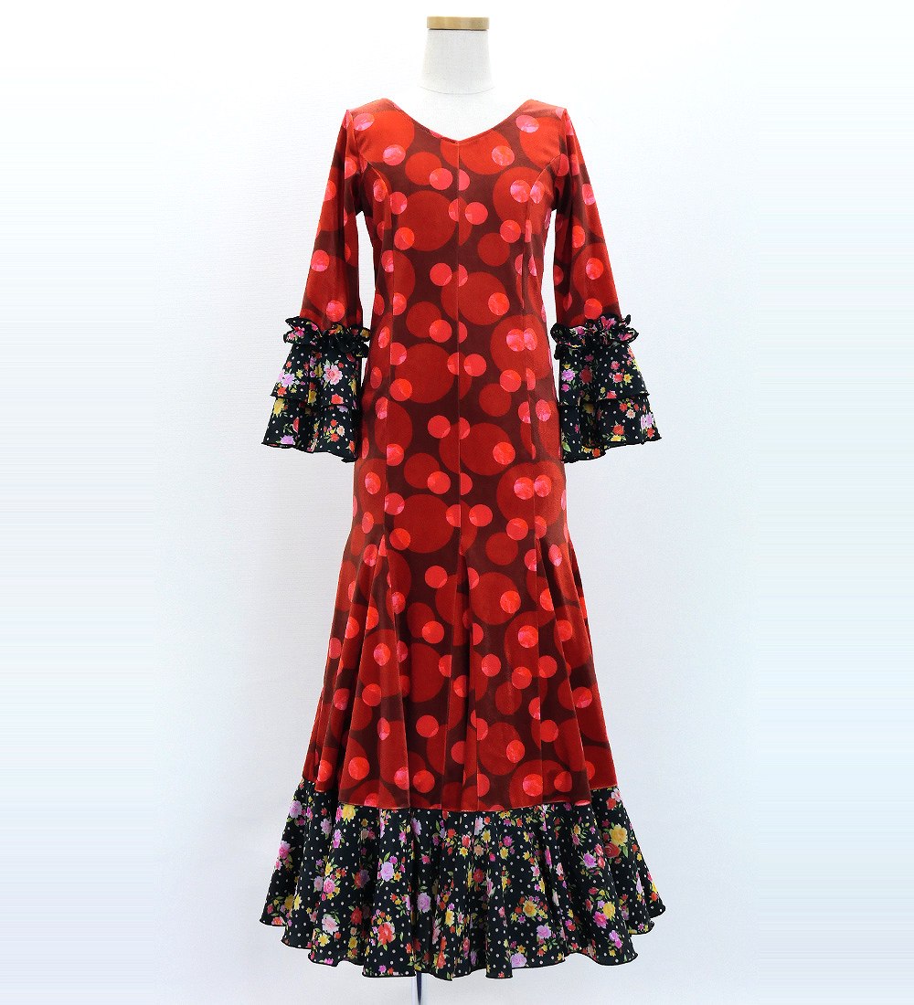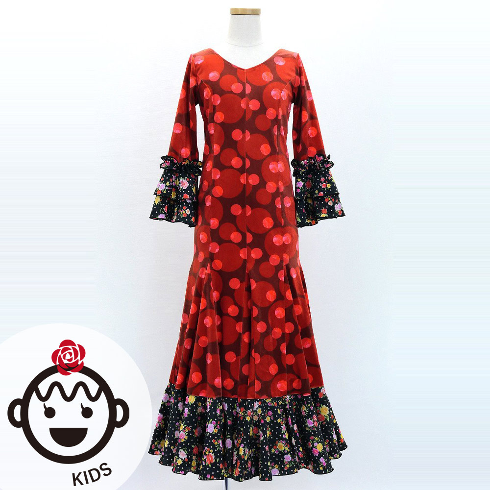 - Kids Flamenco Flare Velvet Dress with Frills / Dots / Red & Black