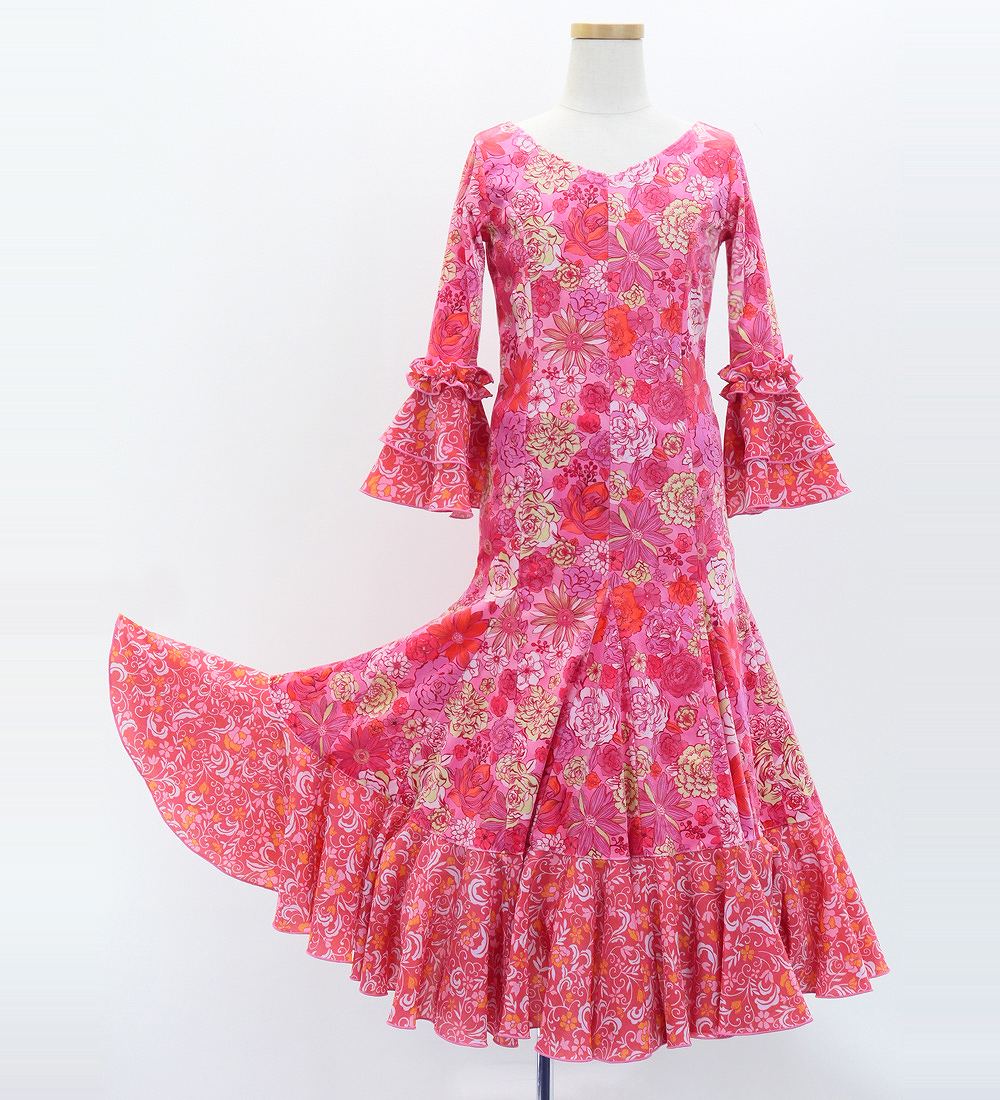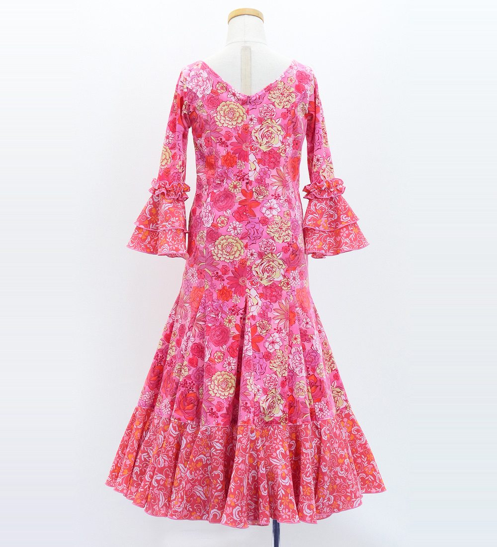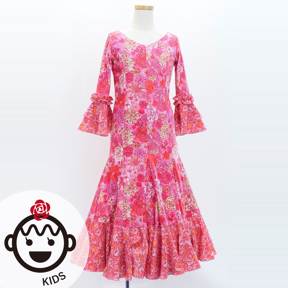 - Kids Flamenco Flare Velvet Dress with Frills / Modern Flower / Pink