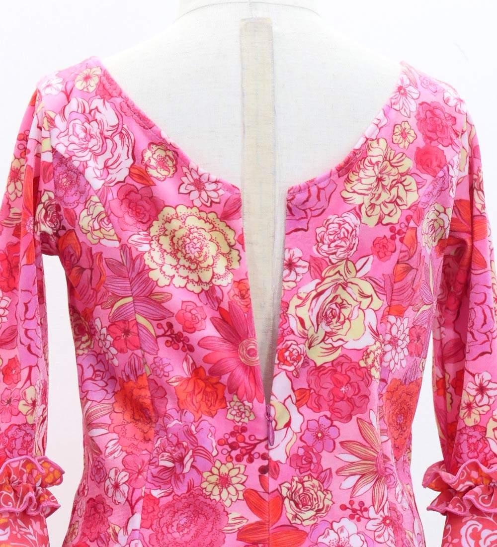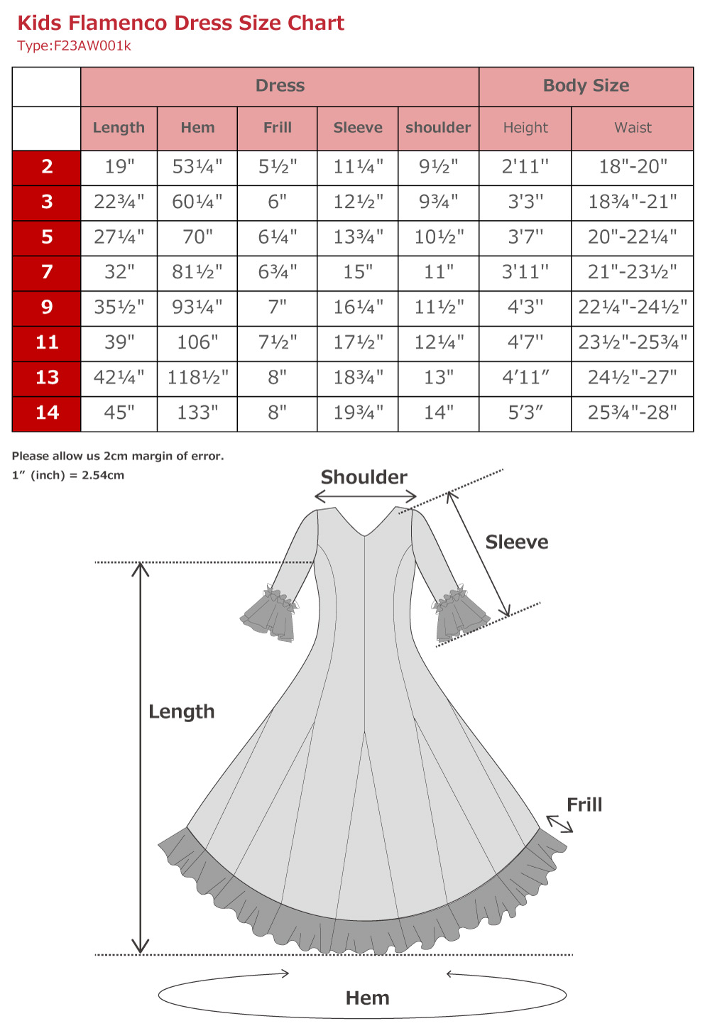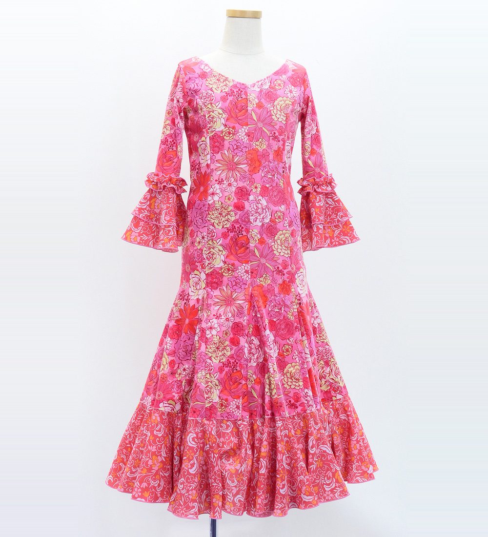 - Kids Flamenco Flare Velvet Dress with Frills / Modern Flower / Pink