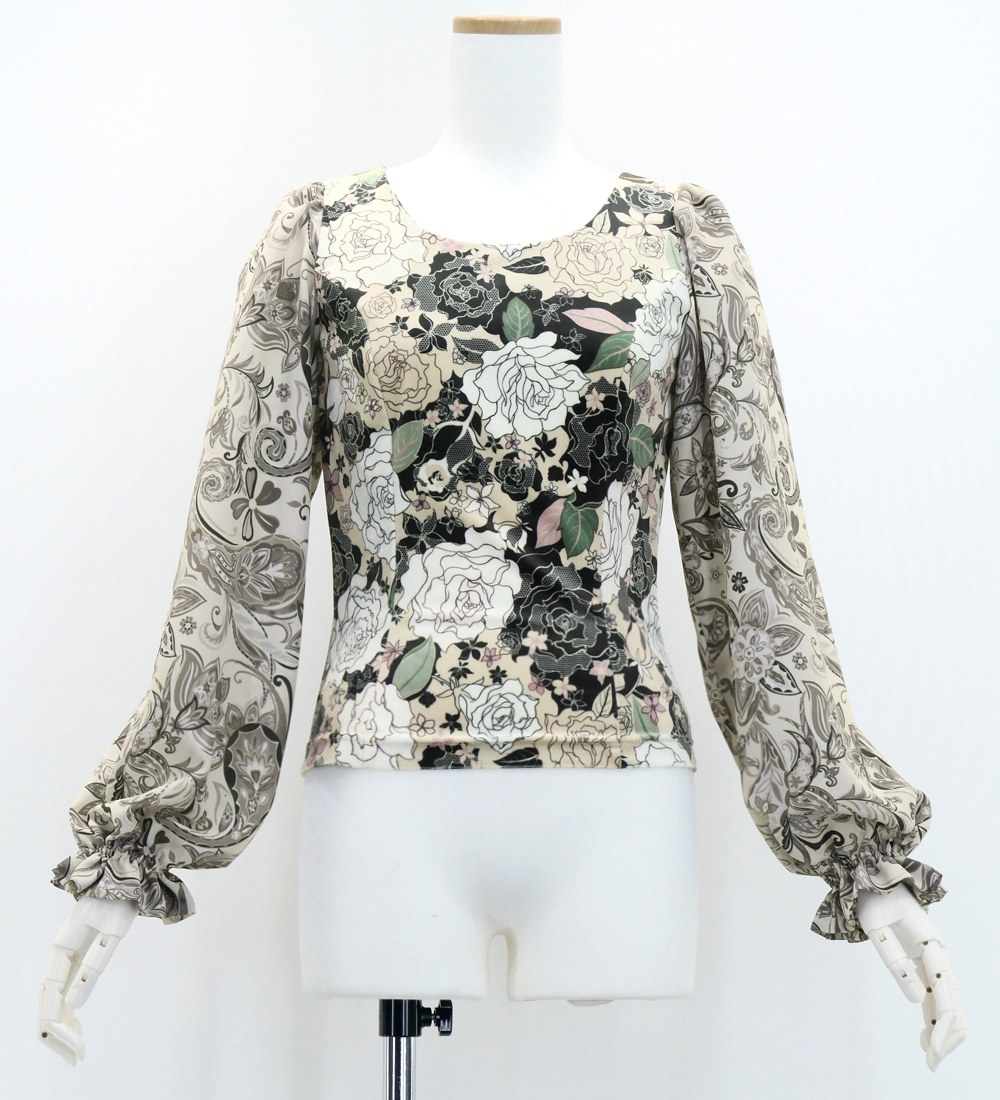 - Long sleeve blouse with stretch velvet body and koshibo sleeve.