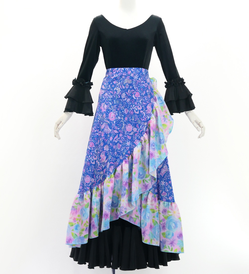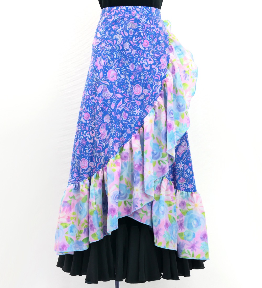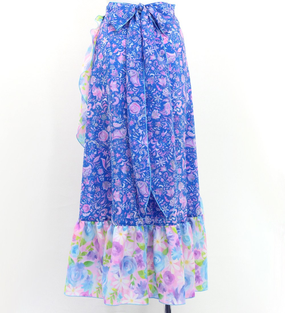 - Wrap Skirt with Frills / Rose Paisley & Flowers / FMS-13