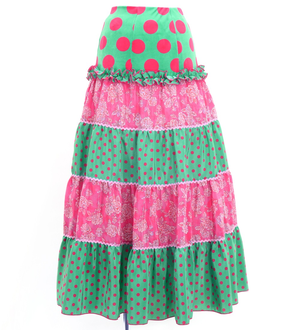 - Flamenco Tiered Skirt / Dots & Roses / FS-29