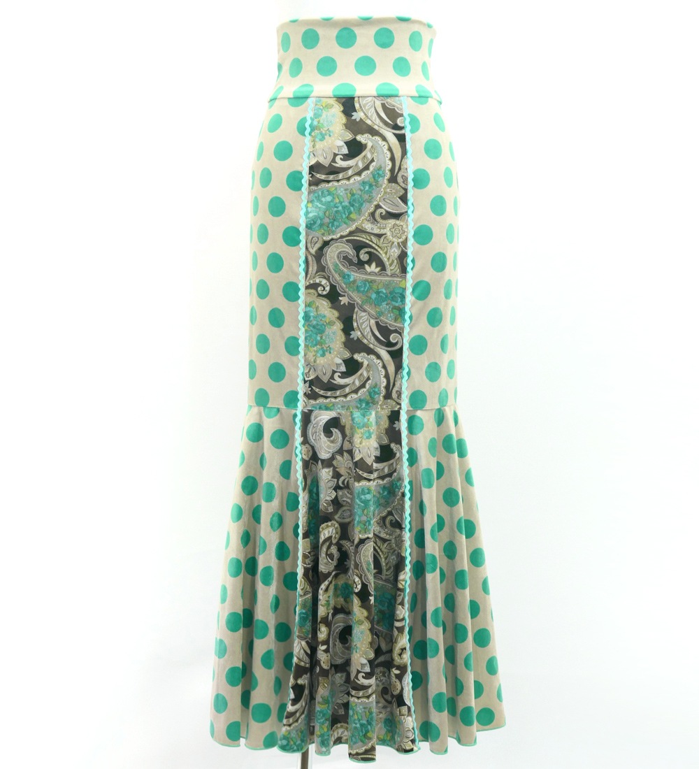 - Flamenco High Waist Mermaid Skirt / Dots & Roses / FS-52