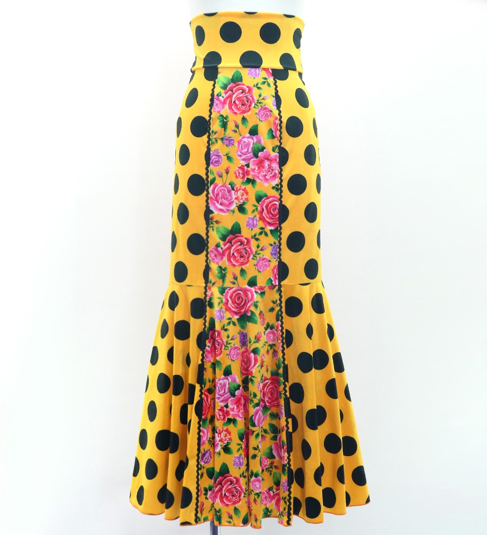 - Flamenco High Waist Mermaid Skirt / Dots & Roses / FS-51
