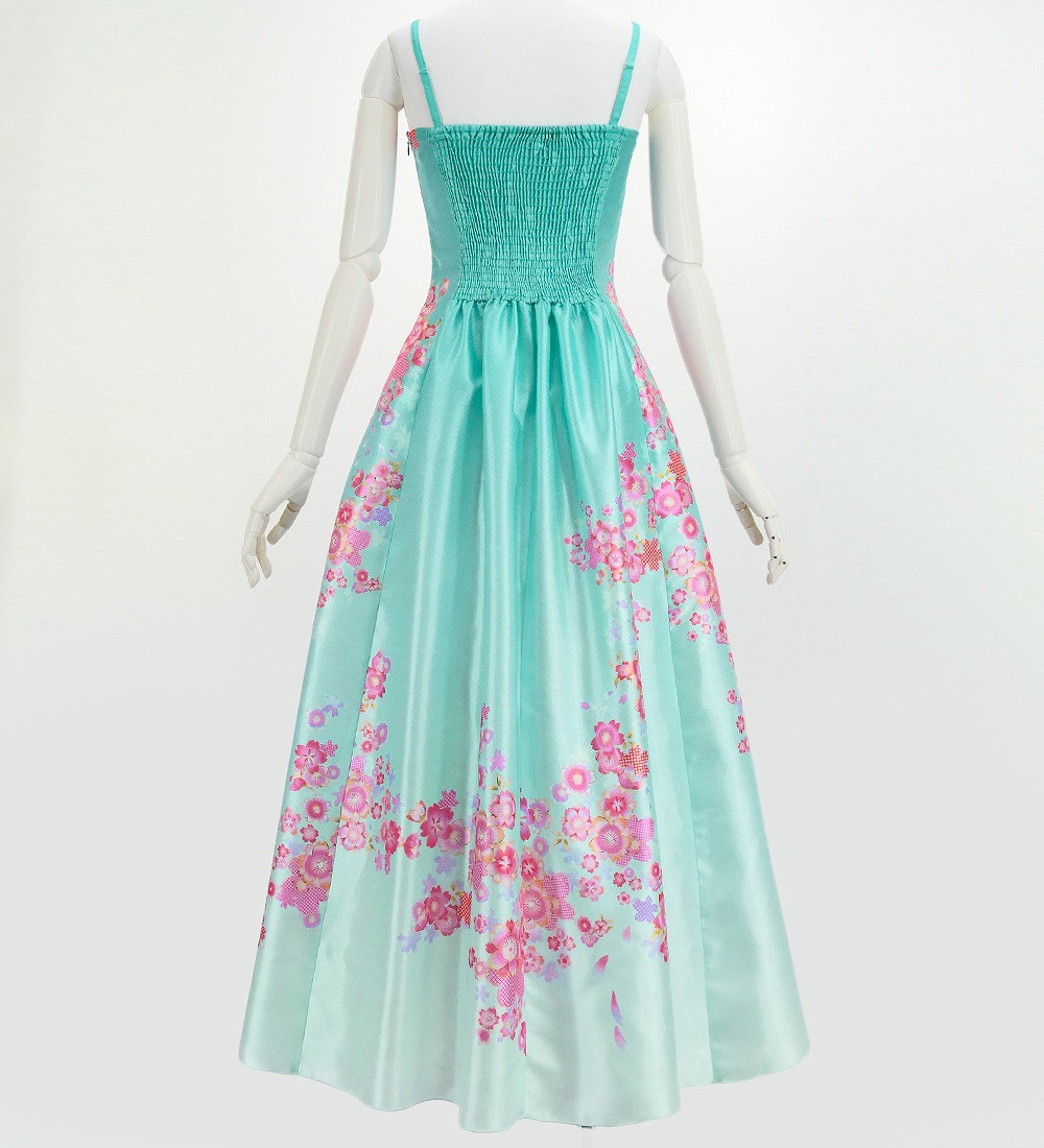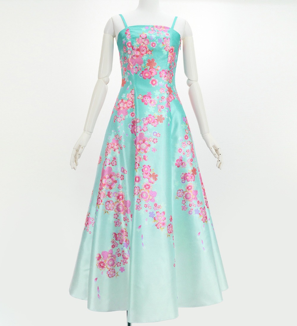 OVERVIEW: -Shantung Long Dress / Japan Fabric -Print:Cherry Blossom -color:Light Blue