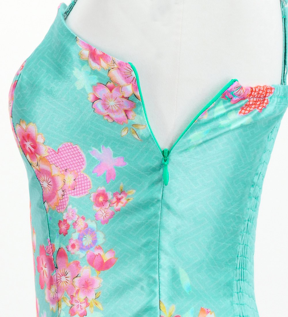 - Shantung : 100% Polyester - Hand Wash Cold - Shirring on the back - Zipper on the side - Detachable shoulder strap