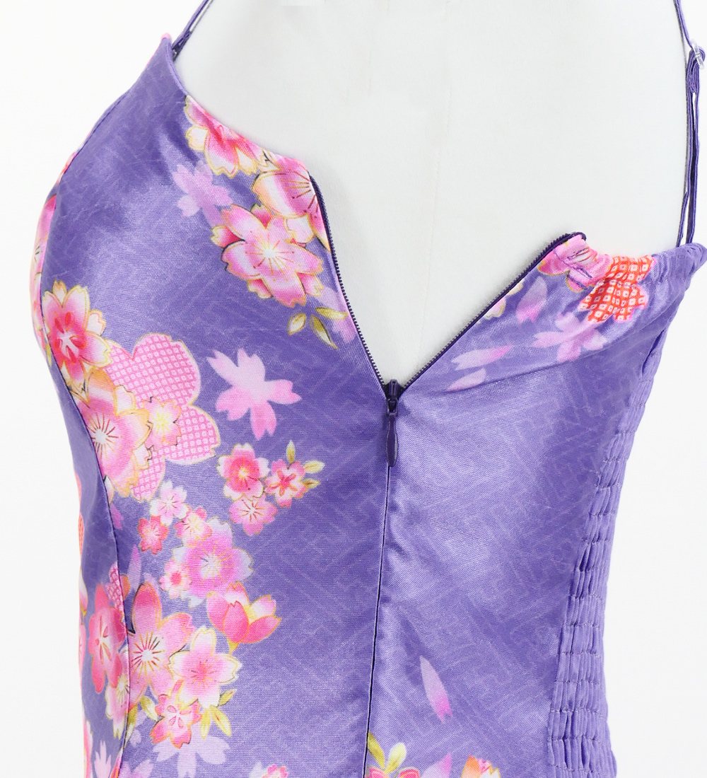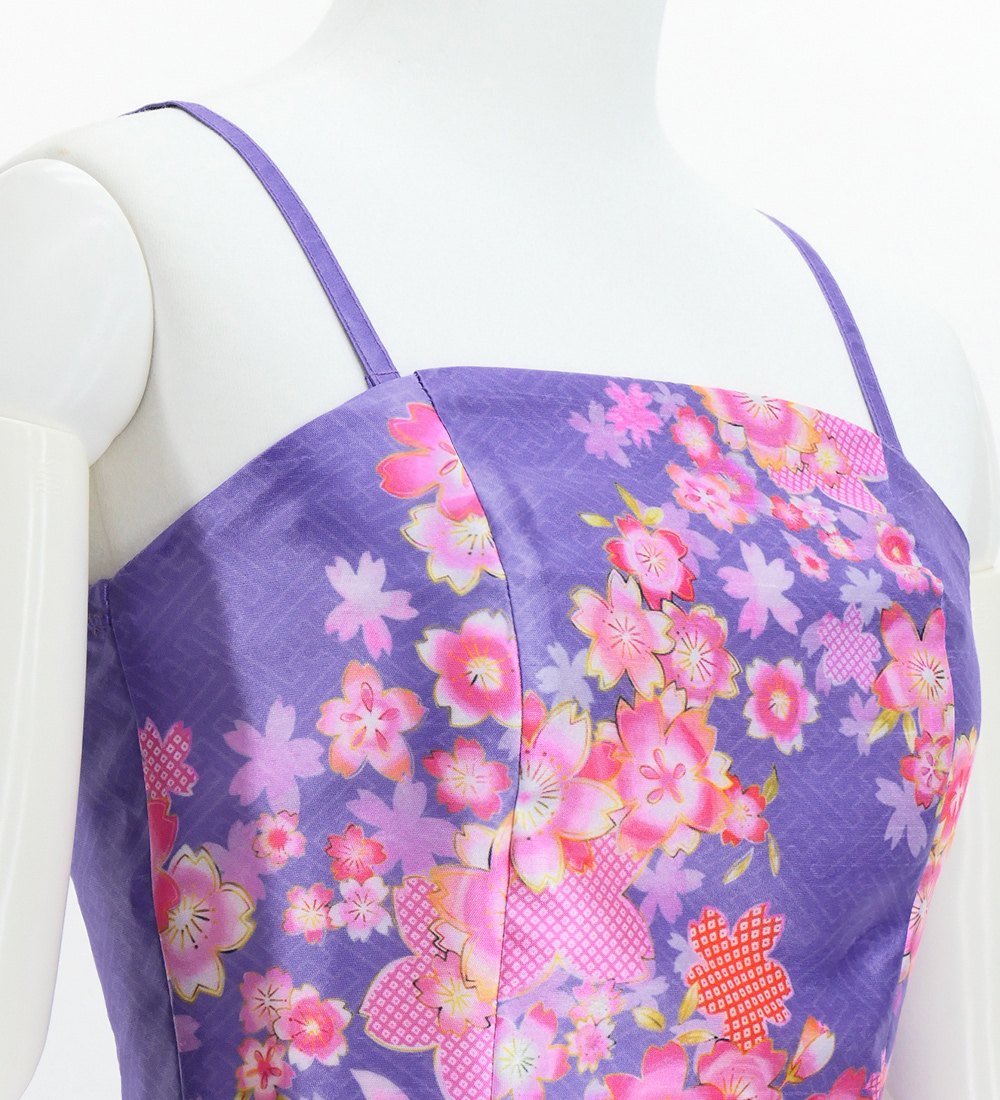 OVERVIEW: -Shantung Long Dress / Japan Fabric -Print:Cherry Blossom -color:Light Purple