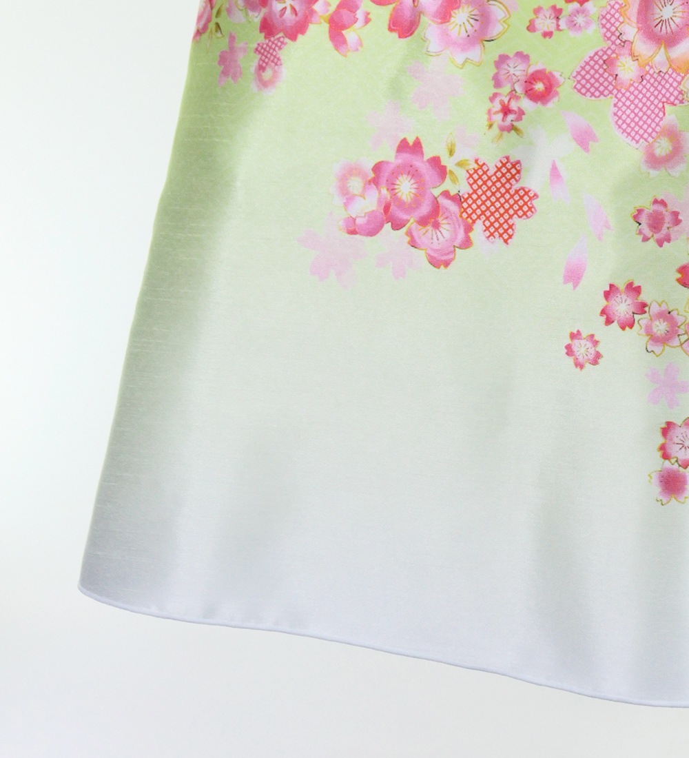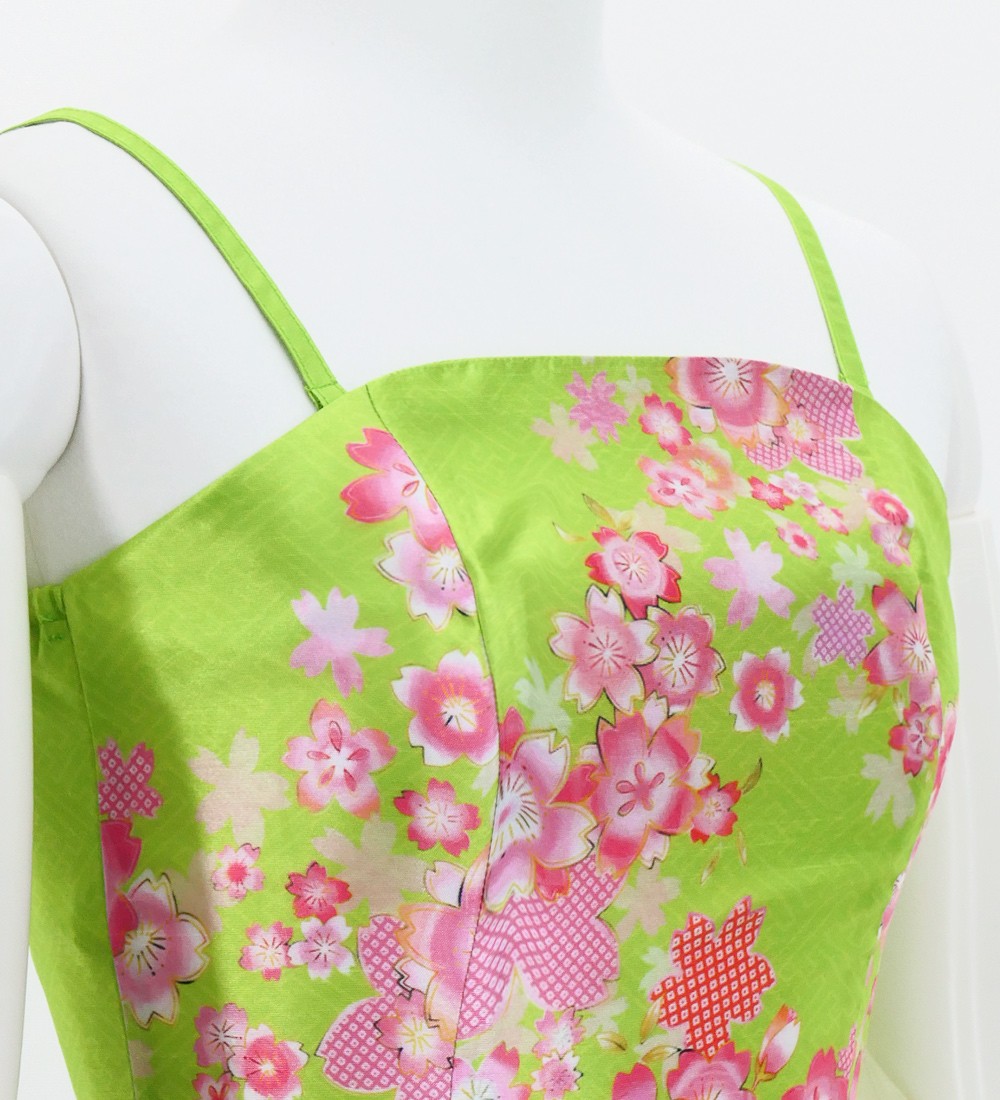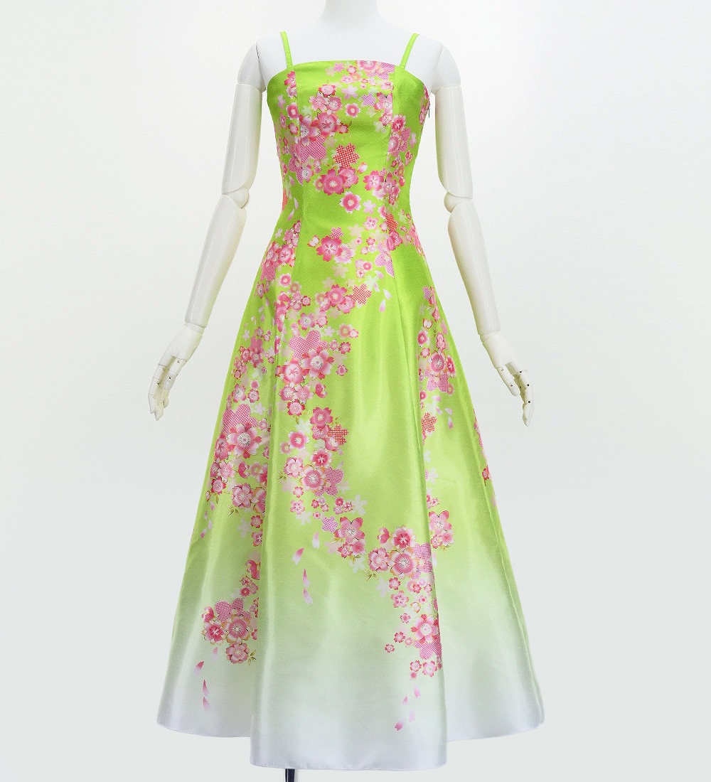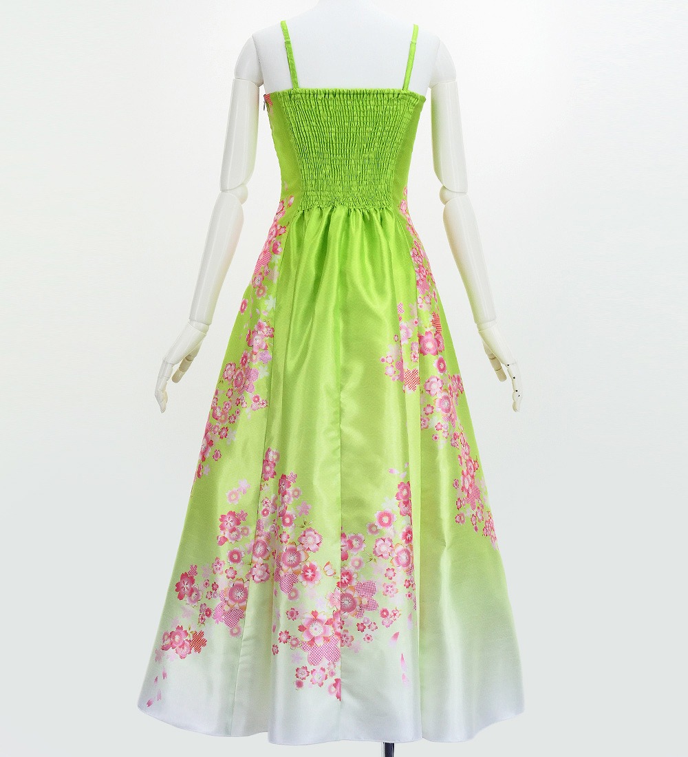OVERVIEW: -Shantung Long Dress / Japan Fabric -Print:Cherry Blossom -color:Light Green