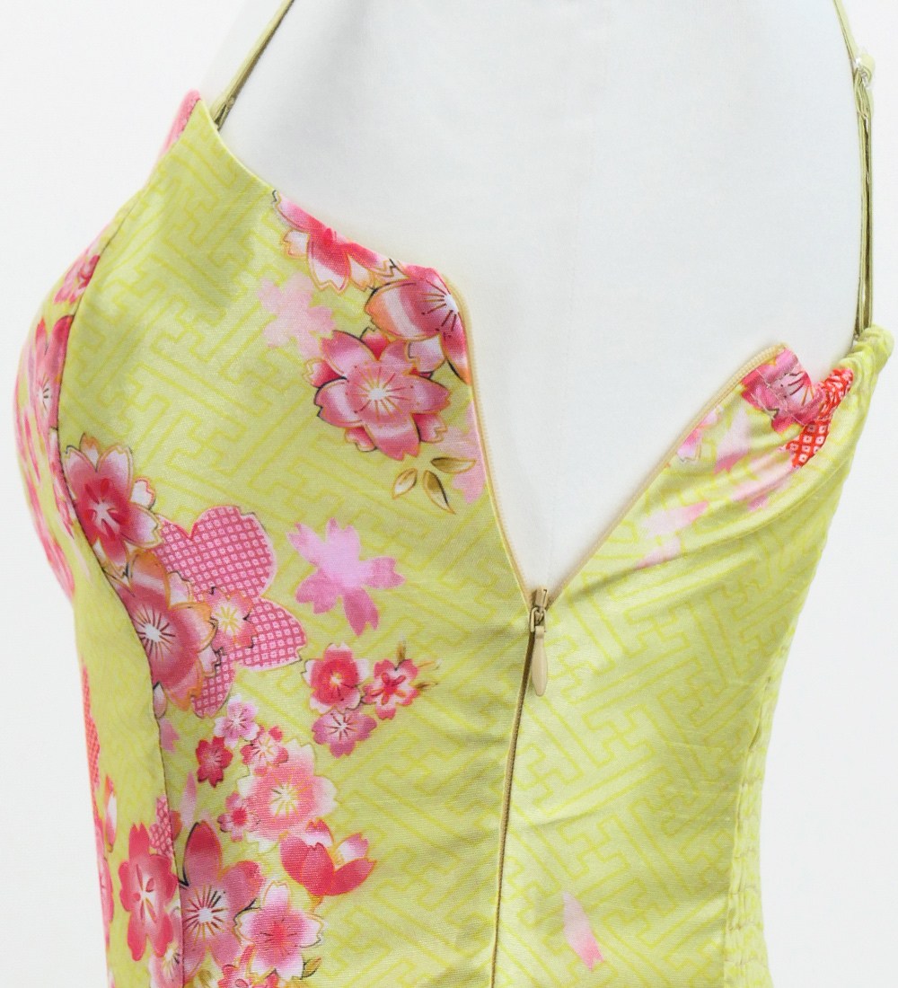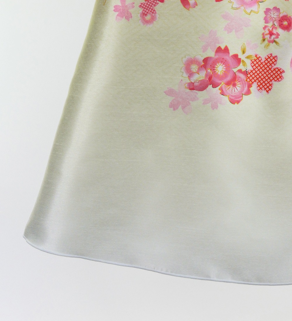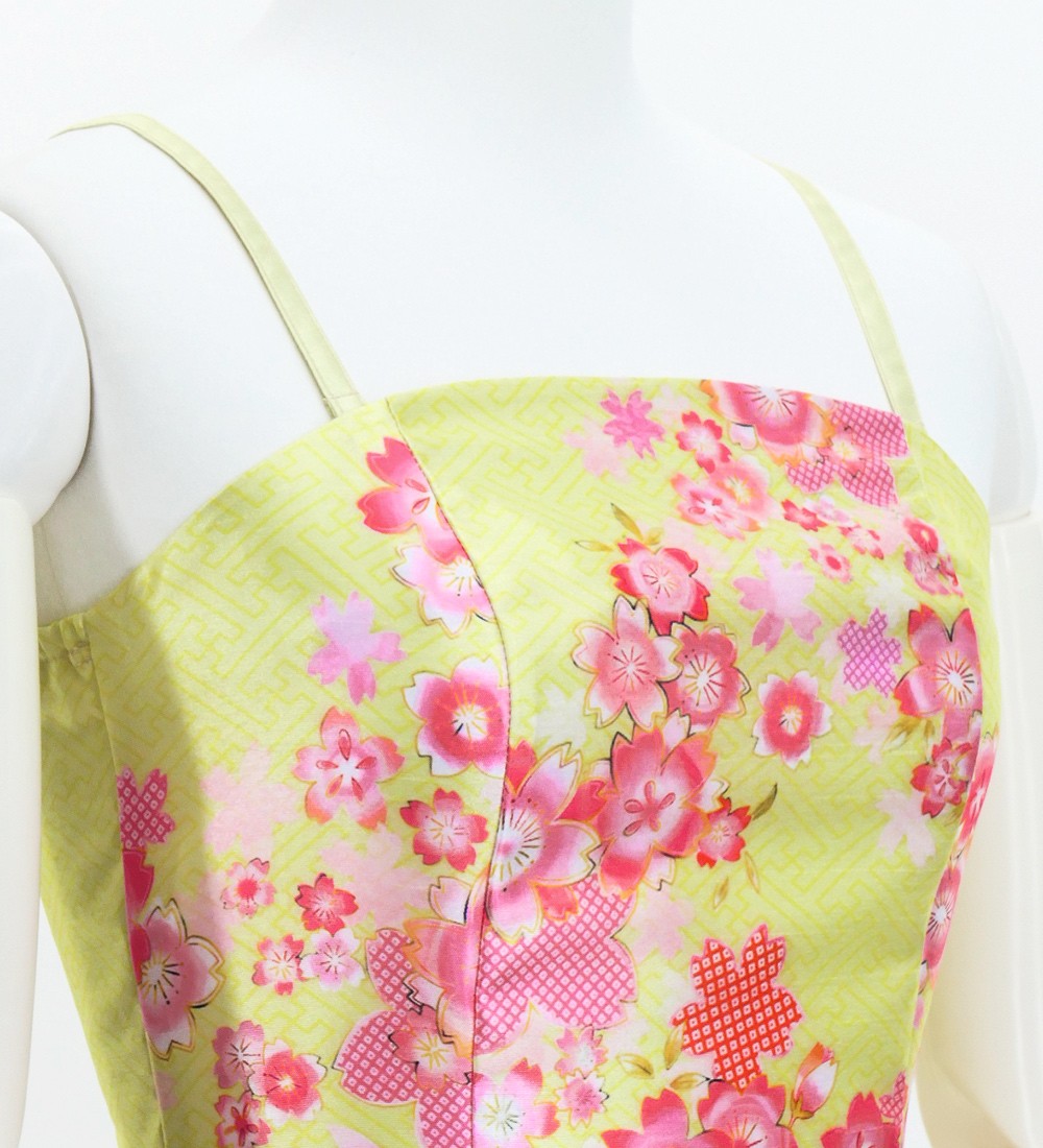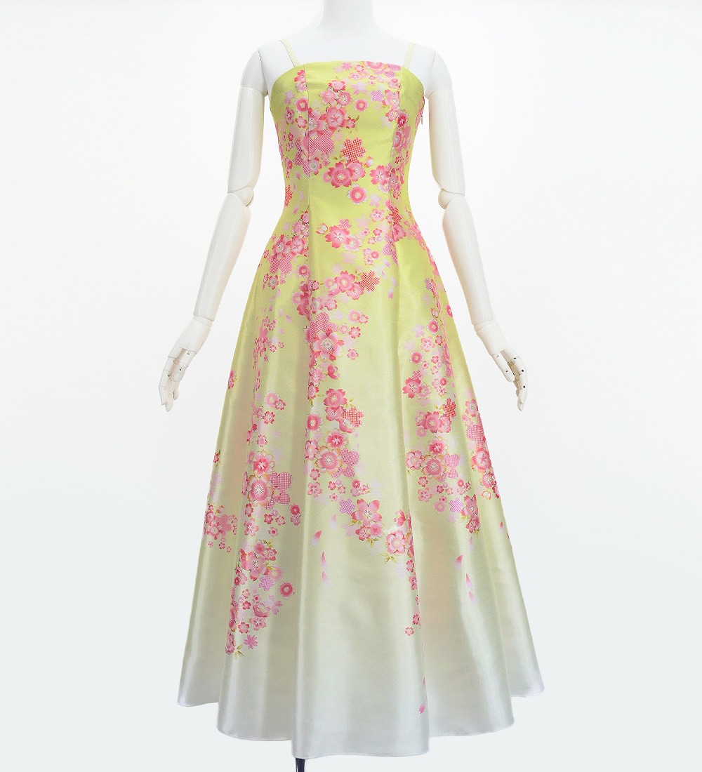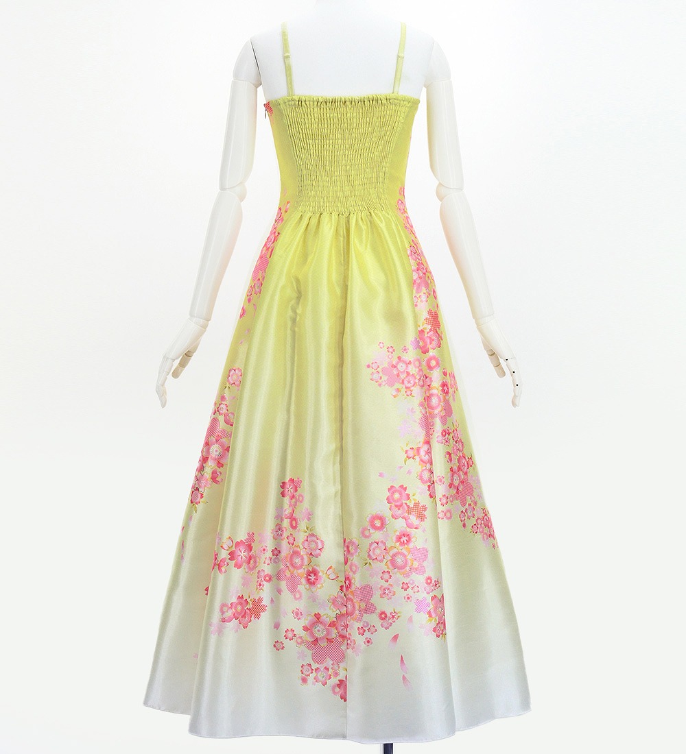 OVERVIEW: -Shantung Long Dress / Japan Fabric -Print:Cherry Blossom -color:Cream Yellow