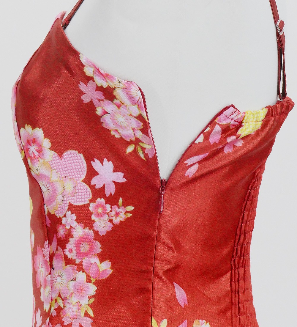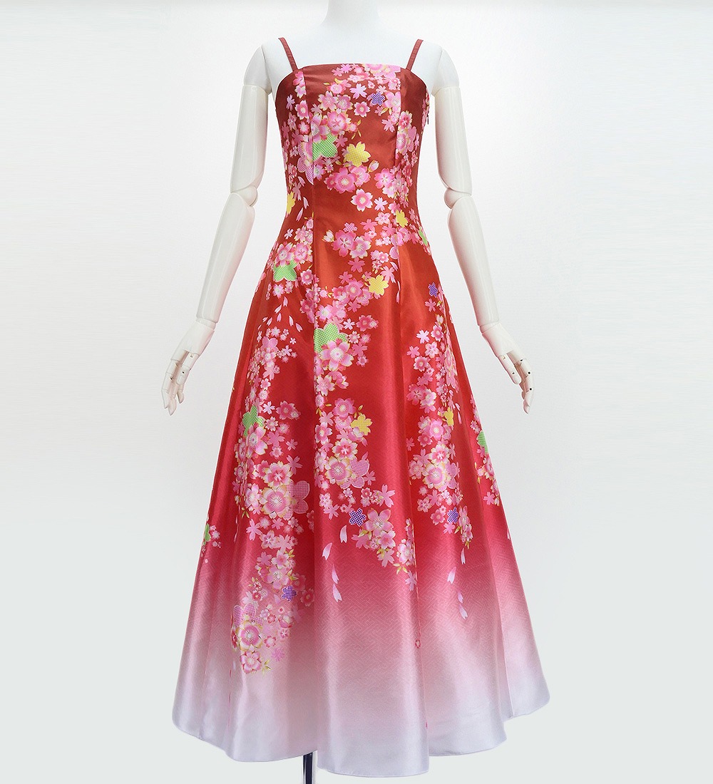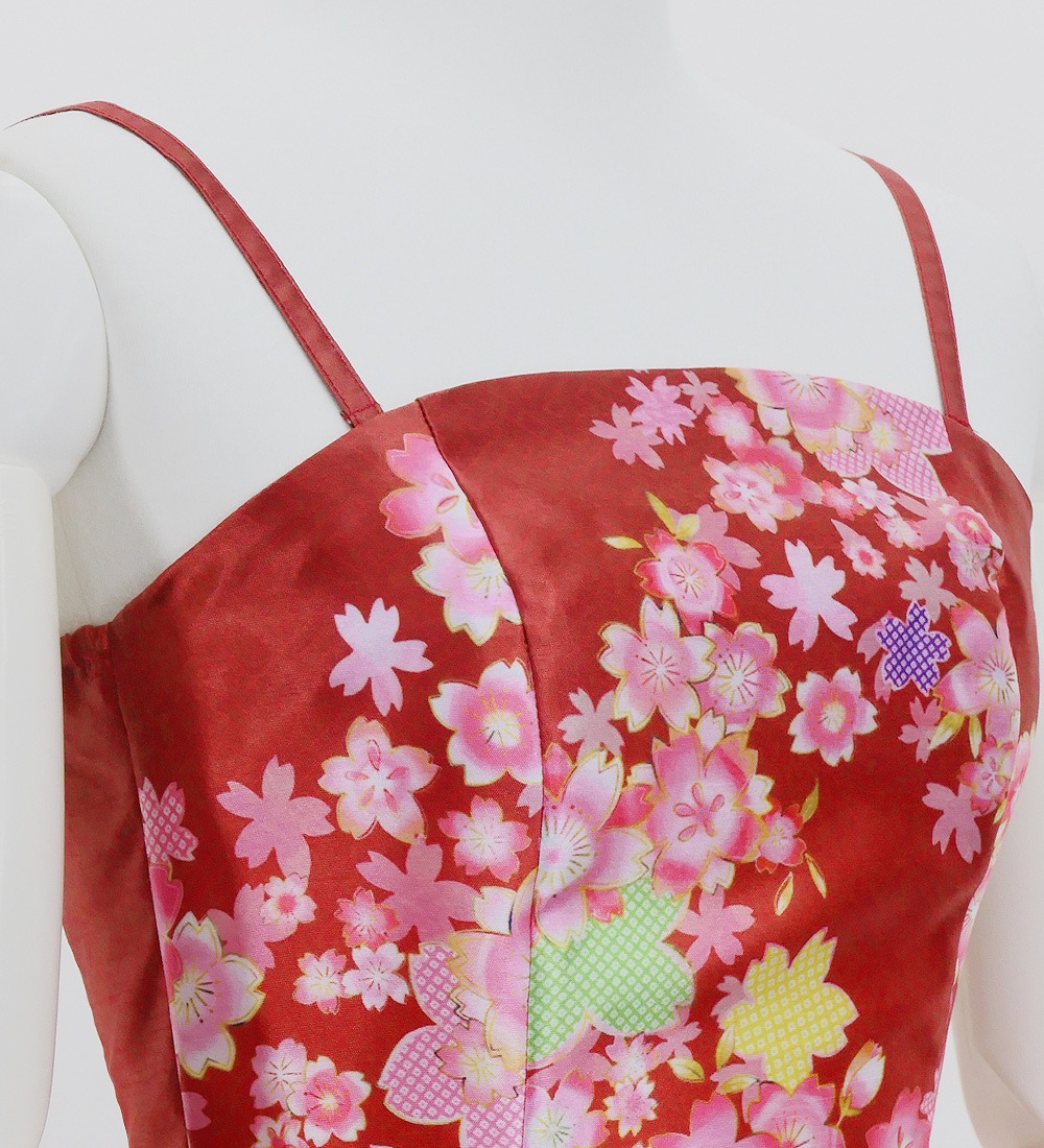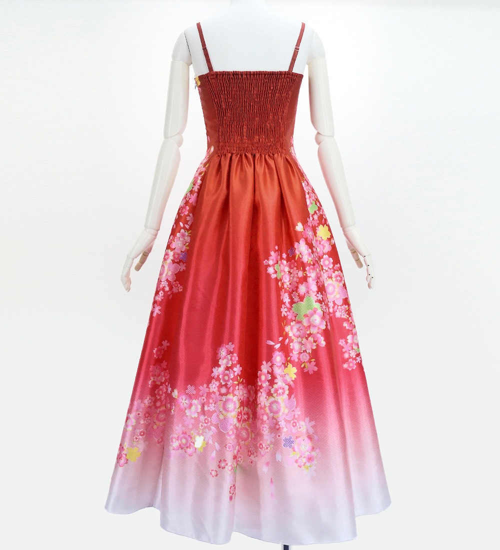OVERVIEW: -Shantung Long Dress / Japan Fabric -Print:Cherry Blossom -color:Red