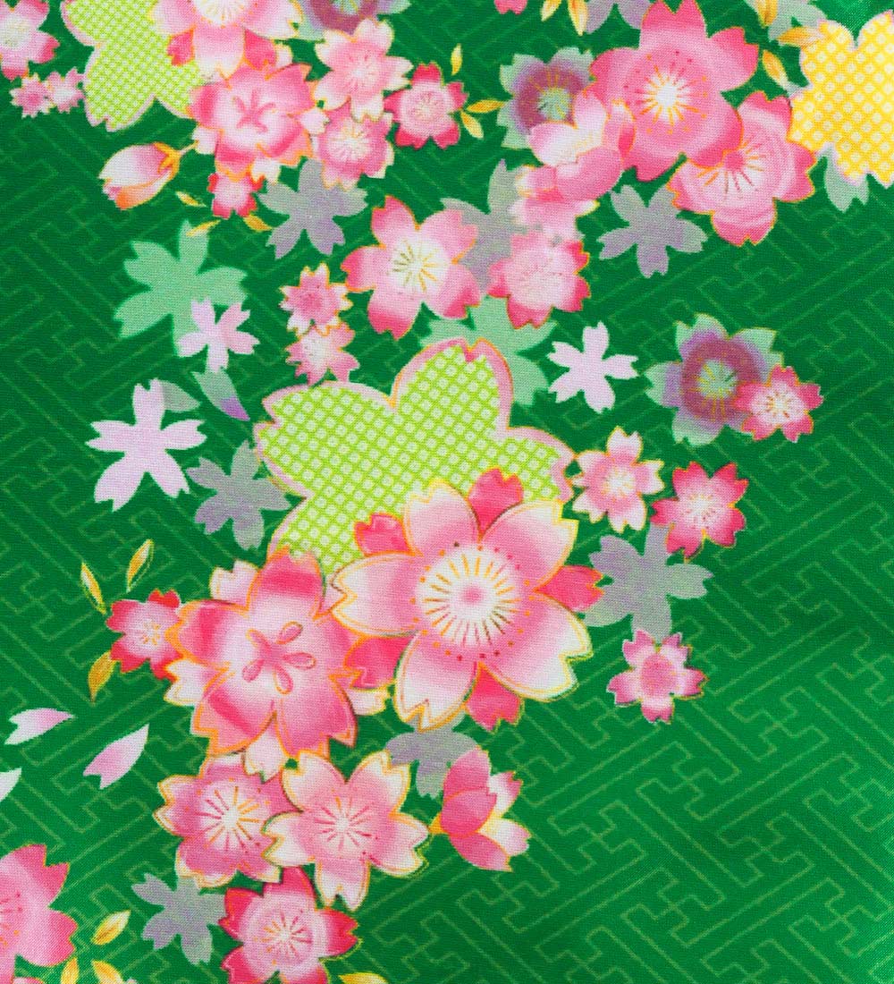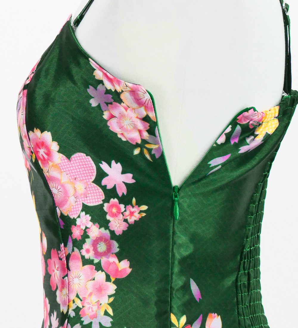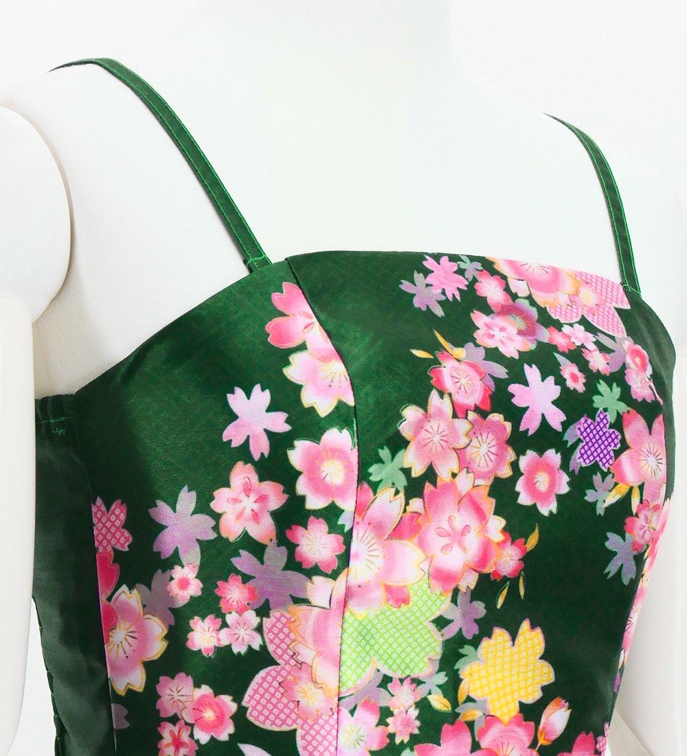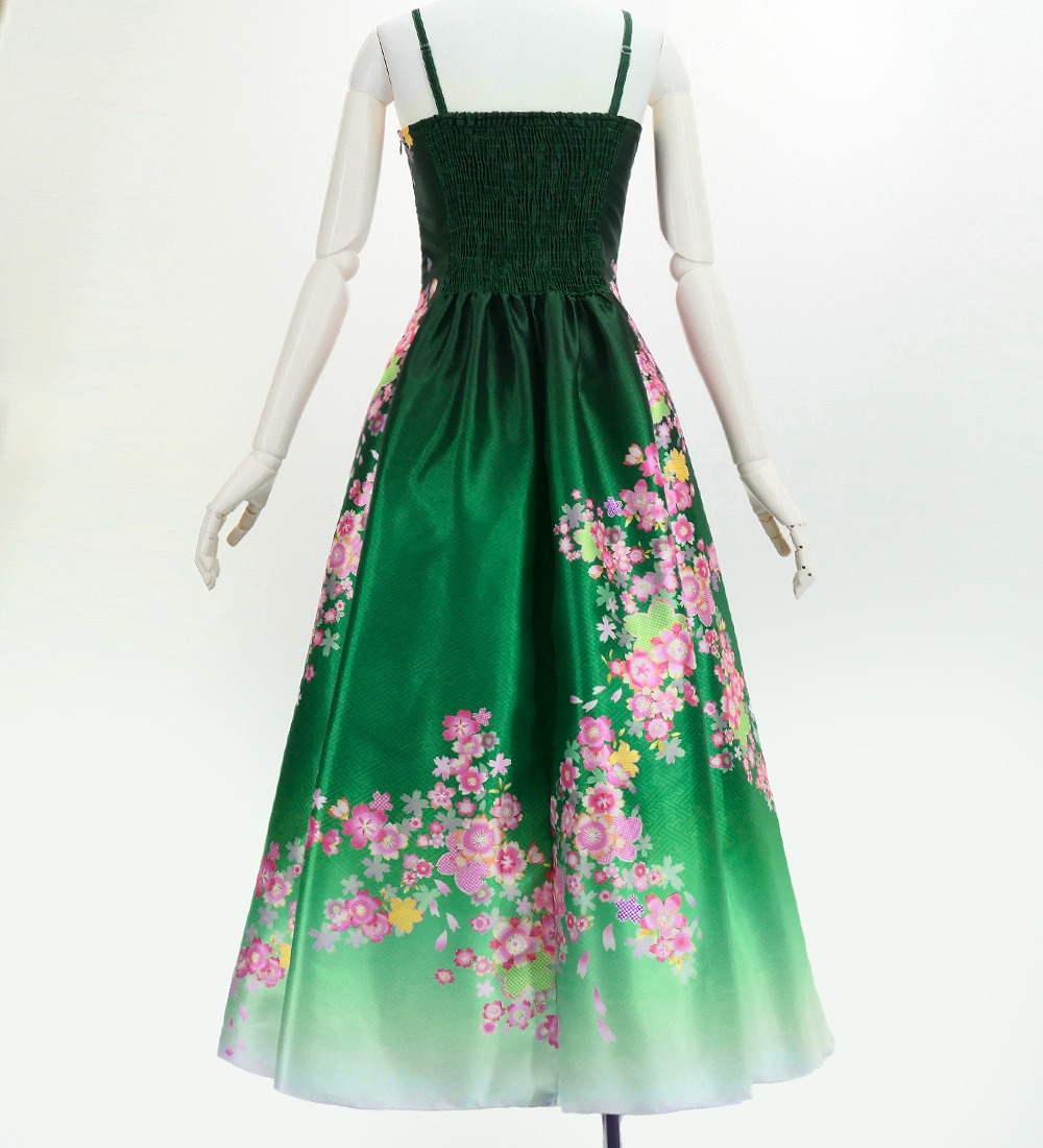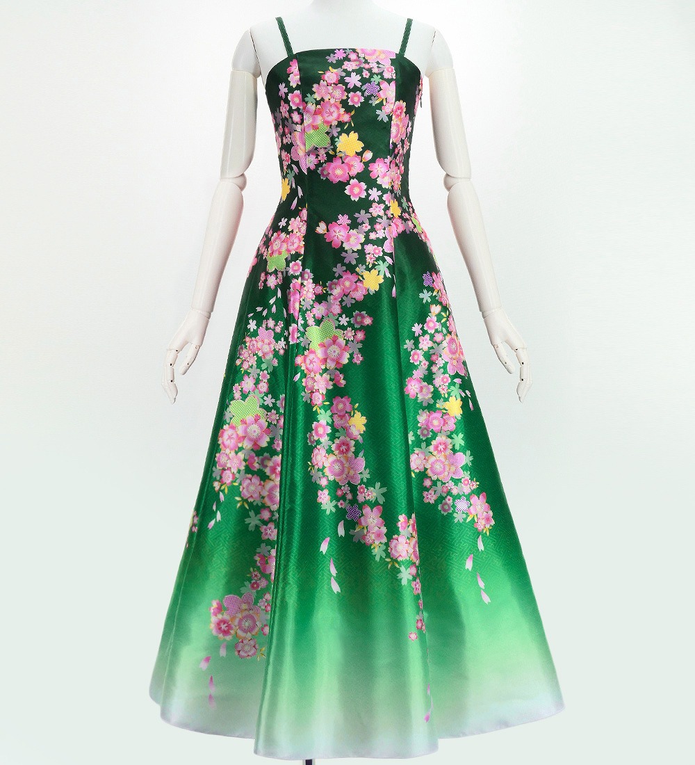OVERVIEW: -Shantung Long Dress / Japan Fabric -Print:Cherry Blossom -color:Green