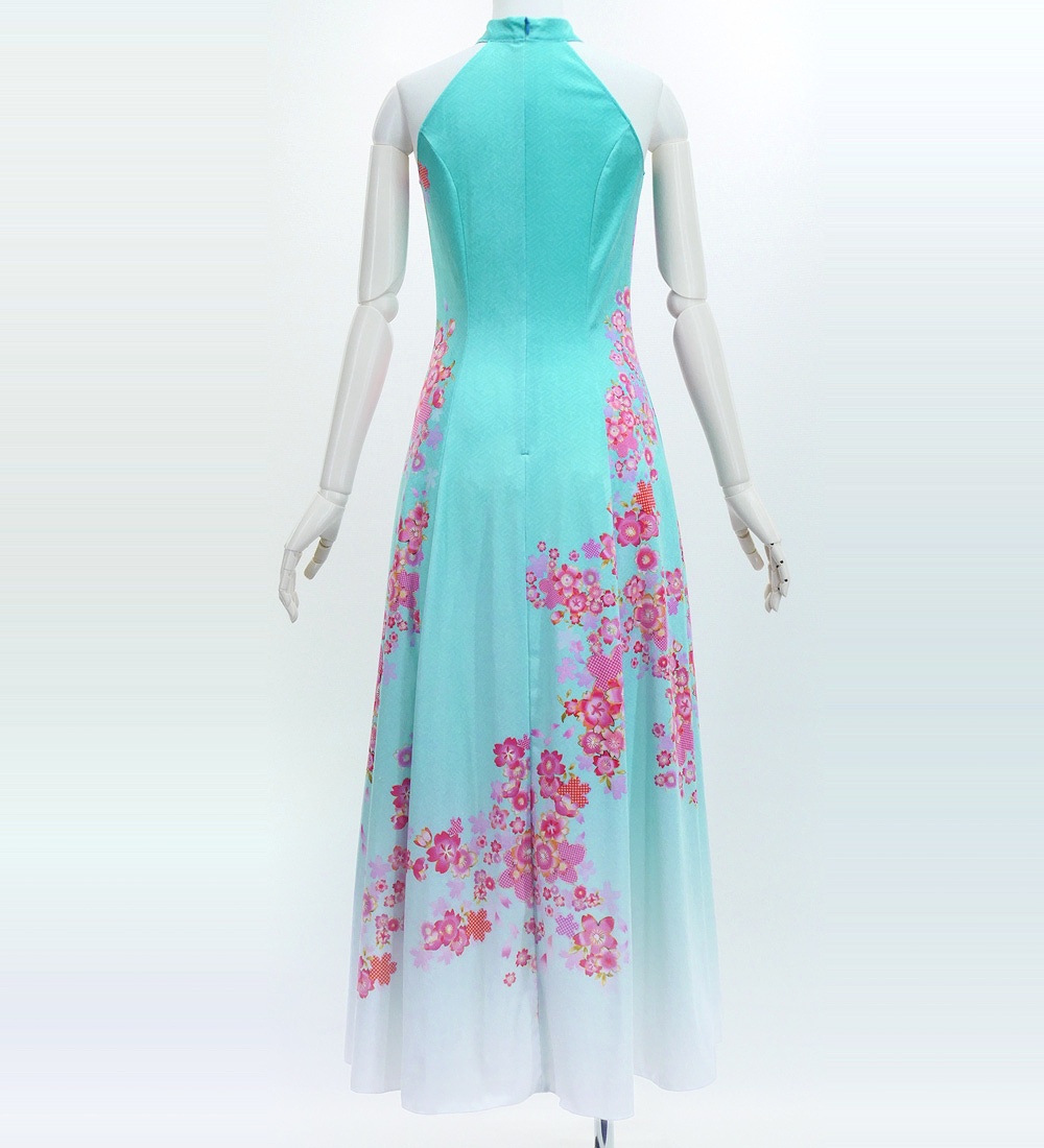 OVERVIEW: -Velvet Long Dress / Japan Fabric -Print:Cherry Blossom -color:Light Blue
