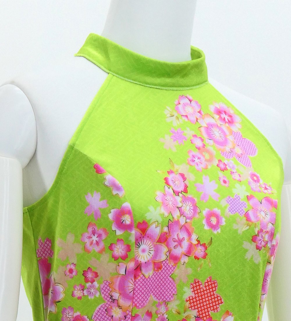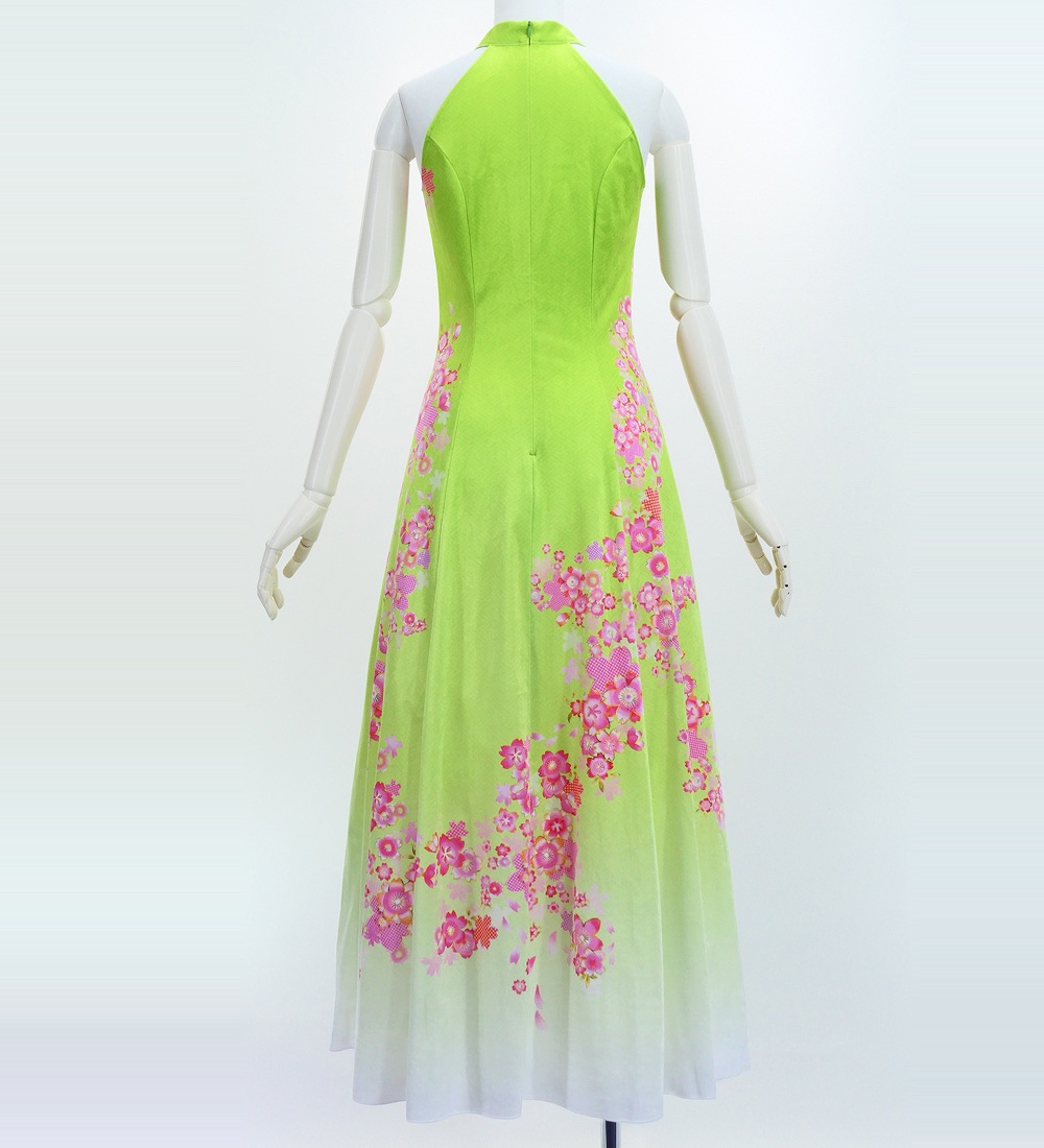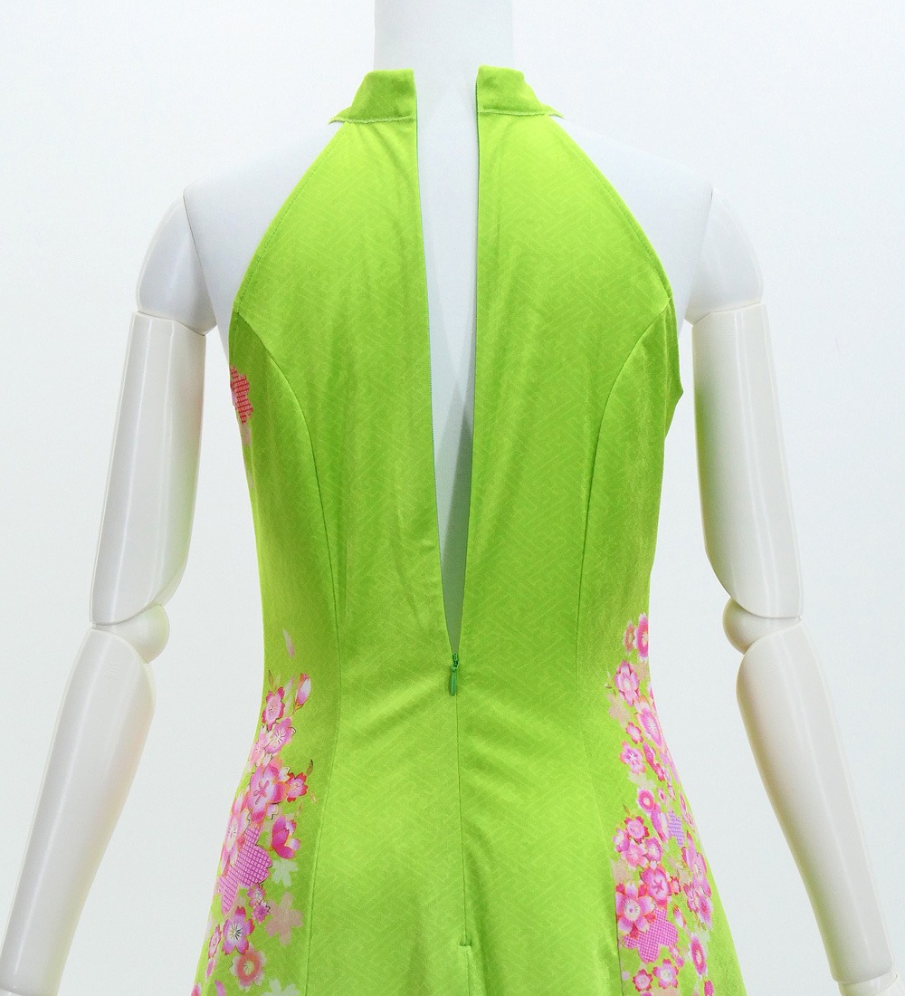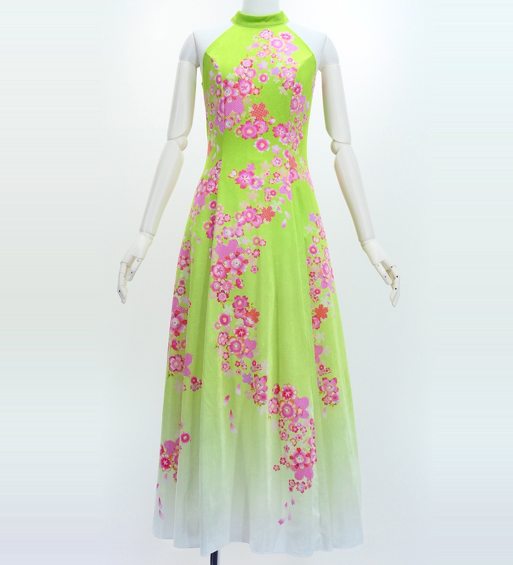 OVERVIEW: -Velvet Long Dress / Japan Fabric -Print:Cherry Blossom -color:Light Green