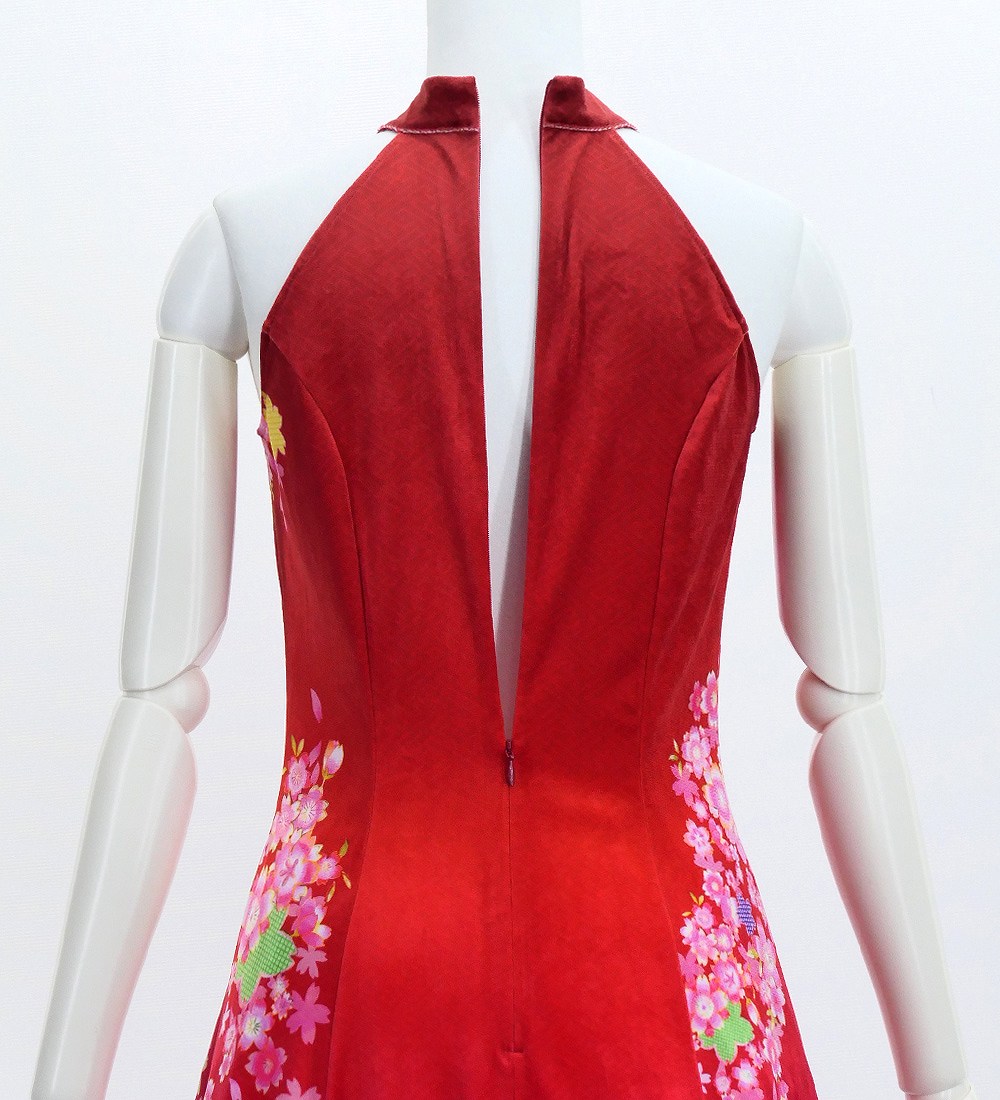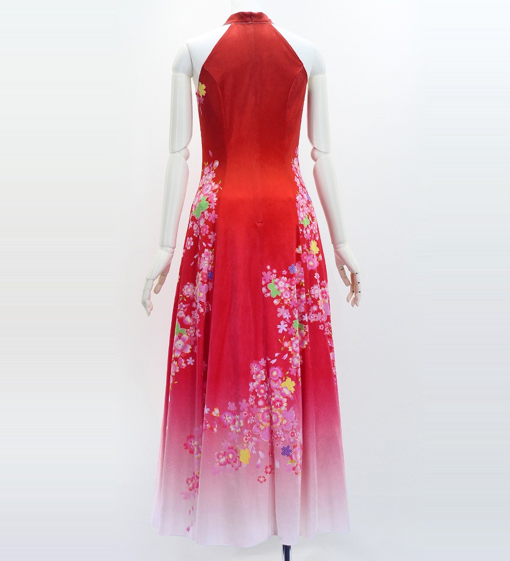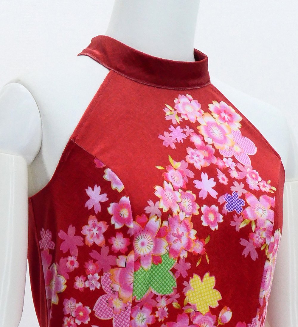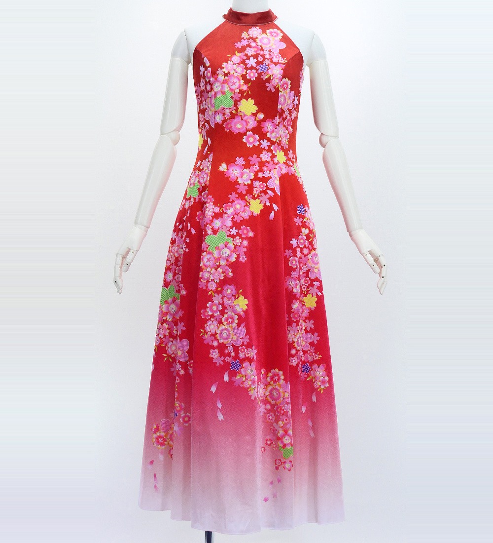 OVERVIEW: -Velvet Long Dress / Japan Fabric -Print:Cherry Blossom -color:Red