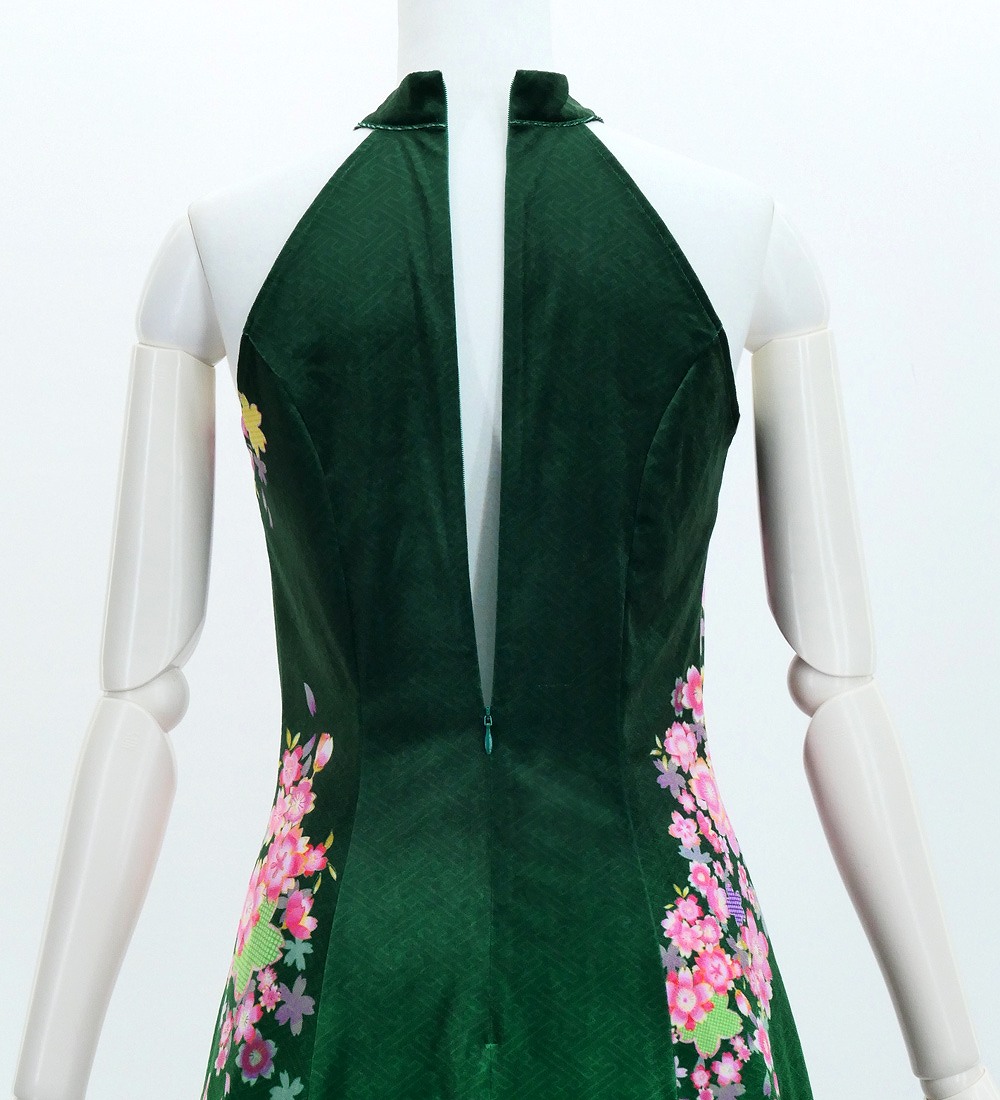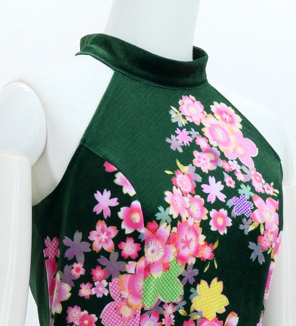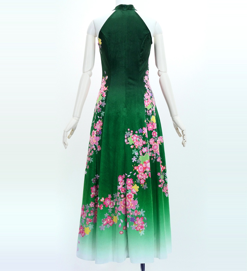 OVERVIEW: -Velvet Long Dress / Japan Fabric -Print:Cherry Blossom -color:Green