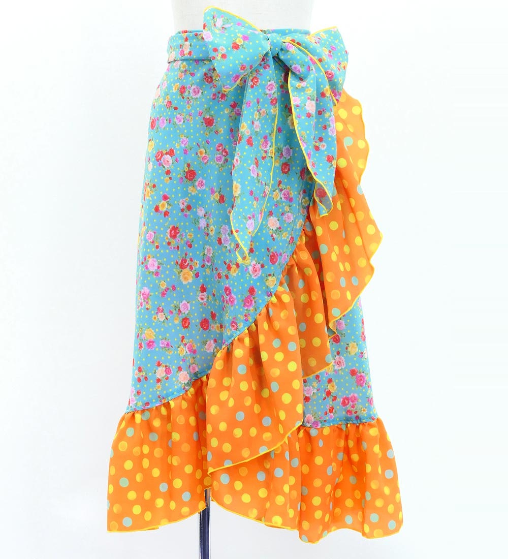 - Kids Wrap Skirt with Frills / Roses & Carnations & Dots