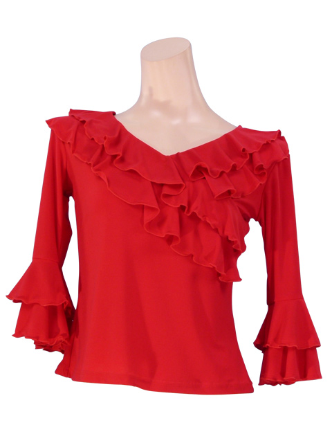 OVERVIEW: - Elbow length sleeves with 2 flounces - Gentle V neckline - Color : Red - Weight : 200g *The average weight of this product may vary in each size.